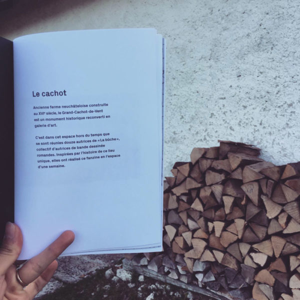 Le Cachot. Fanzine, 2019. Durant une semaine de la mi-août, une douzaine de bûcheuses ont eu la chance d’être en résidence à la Fondation du Grand-Cachot-de-Vent, dans le Jura neuchâtelois, et d’y créer ensemble un fanzine inspiré de ce lieu hors du commun.