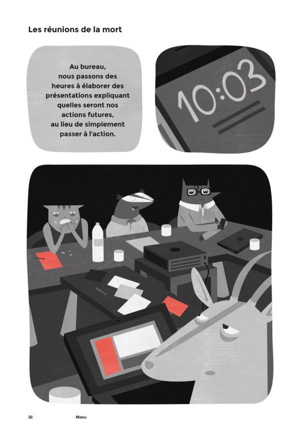 Cette bande dessinée est le deuxième ouvrage de Maou, paru en 2016. L’autrice y raconte son expérience en tant que graphiste dans une fédération sportive internationale.